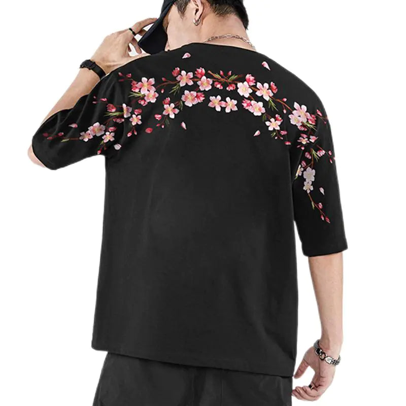 Don't miss out on this fashionable addition to your closet! Get ready to express your style with our Japan Style Sakura Embroidery Men Floral Short Sleeve T-Shirt today!
